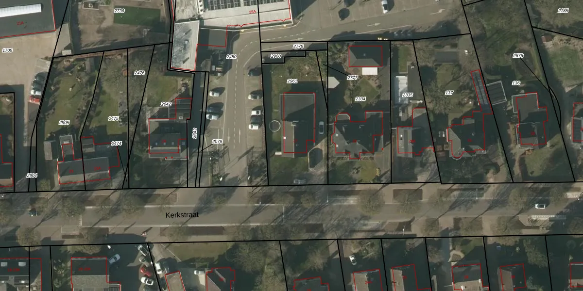 Het perceel waarop Kerkstraat 27 staat heeft een oppervlakte van 908 m². Dit is een groot perceel. De perceeloppervlakte wordt geregistreerd door het Kadaster. Gedetailleerde informatie over de maten van dit perceel kunt u vinden in het rapport Kadastrale kaart met maatvoering van Kerkstraat 27.