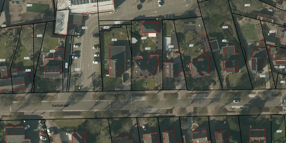 Het perceel waarop Kerkstraat 29 staat heeft een oppervlakte van 1065 m². Dit is een zeer groot perceel. De perceeloppervlakte wordt geregistreerd door het Kadaster. Gedetailleerde informatie over de maten van dit perceel kunt u vinden in het rapport Kadastrale kaart met maatvoering van Kerkstraat 29.