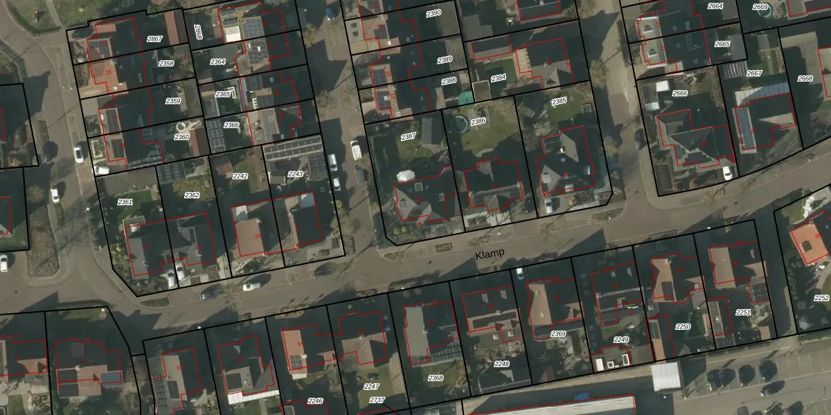 Het perceel waarop Klamp 29 staat heeft een oppervlakte van 566 m². Dit is een groot perceel. De perceeloppervlakte wordt geregistreerd door het Kadaster. Gedetailleerde informatie over de maten van dit perceel kunt u vinden in het rapport Kadastrale kaart met maatvoering van Klamp 29.