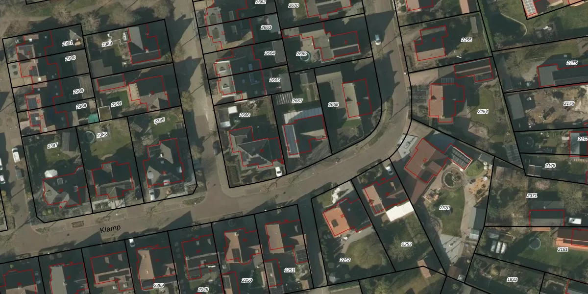 Het perceel waarop Klamp 37 staat heeft een oppervlakte van 475 m². Dit is een groot perceel. De perceeloppervlakte wordt geregistreerd door het Kadaster. Gedetailleerde informatie over de maten van dit perceel kunt u vinden in het rapport Kadastrale kaart met maatvoering van Klamp 37.