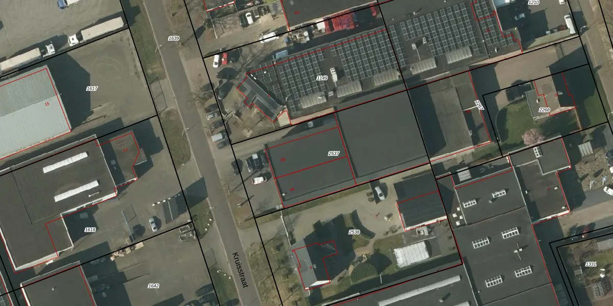Het perceel waarop Kruisstraat 4-B staat heeft een oppervlakte van 1500 m². Dit is een zeer groot perceel. De perceeloppervlakte wordt geregistreerd door het Kadaster. Gedetailleerde informatie over de maten van dit perceel kunt u vinden in het rapport Kadastrale kaart met maatvoering van Kruisstraat 4-B.