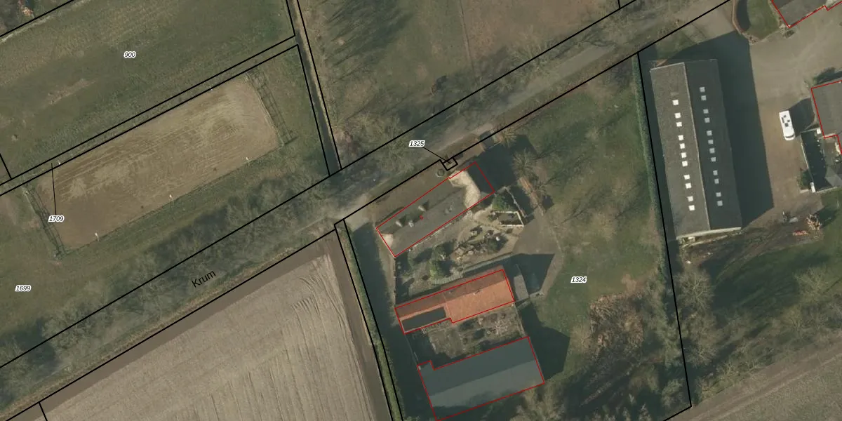 Het perceel waarop Krum 8 staat heeft een oppervlakte van 5796 m². Dit is een zeer groot perceel. De perceeloppervlakte wordt geregistreerd door het Kadaster. Gedetailleerde informatie over de maten van dit perceel kunt u vinden in het rapport Kadastrale kaart met maatvoering van Krum 8.