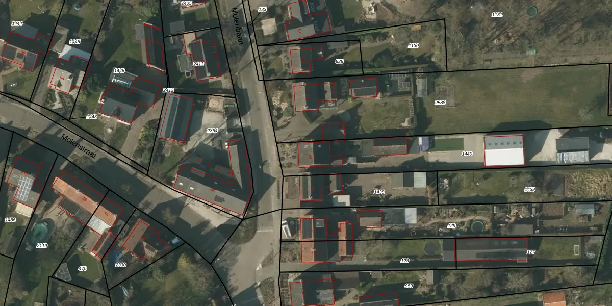 Molenbaan 6-A is gelegen op kadastraal perceel MEL00F1440. Deze kadastrale aanduiding is uniek en wordt gebruikt door het Kadaster om eigendomsrechten en andere zakelijke rechten vast te leggen. Het perceel maakt onderdeel uit van de kadastrale gemeente Meijel.