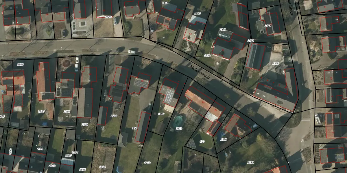 Het perceel waarop Molenstraat 43-A staat heeft een oppervlakte van 495 m². Dit is een groot perceel. De perceeloppervlakte wordt geregistreerd door het Kadaster. Gedetailleerde informatie over de maten van dit perceel kunt u vinden in het rapport Kadastrale kaart met maatvoering van Molenstraat 43-A.