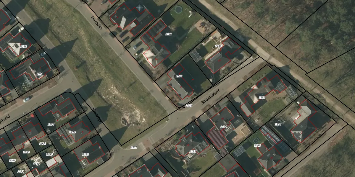 Het perceel waarop Paradijs 2 staat heeft een oppervlakte van 530 m². Dit is een groot perceel. De perceeloppervlakte wordt geregistreerd door het Kadaster. Gedetailleerde informatie over de maten van dit perceel kunt u vinden in het rapport Kadastrale kaart met maatvoering van Paradijs 2.