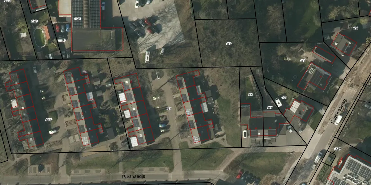 Het perceel waarop Pastpaedje 43 staat heeft een oppervlakte van 2930 m². Dit is een zeer groot perceel. De perceeloppervlakte wordt geregistreerd door het Kadaster. Gedetailleerde informatie over de maten van dit perceel kunt u vinden in het rapport Kadastrale kaart met maatvoering van Pastpaedje 43.