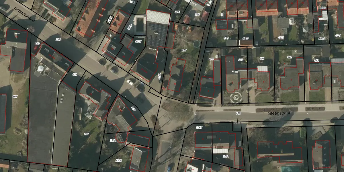 Het perceel waarop Schoolstraat 39 staat heeft een oppervlakte van 823 m². Dit is een groot perceel. De perceeloppervlakte wordt geregistreerd door het Kadaster. Gedetailleerde informatie over de maten van dit perceel kunt u vinden in het rapport Kadastrale kaart met maatvoering van Schoolstraat 39.