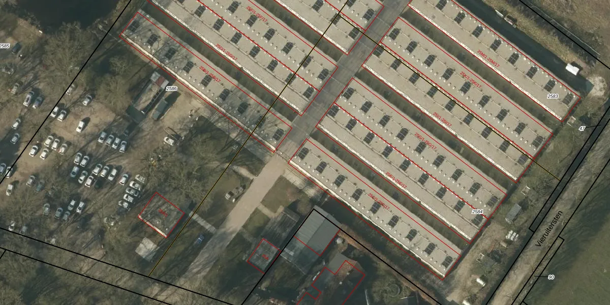 Het perceel waarop Vieruitersten 25-C-1 staat heeft een oppervlakte van 6637 m². Dit is een zeer groot perceel. De perceeloppervlakte wordt geregistreerd door het Kadaster. Gedetailleerde informatie over de maten van dit perceel kunt u vinden in het rapport Kadastrale kaart met maatvoering van Vieruitersten 25-C-1.