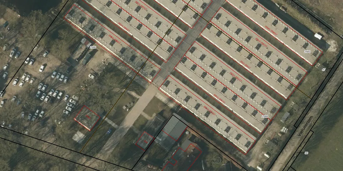 Het perceel waarop Vieruitersten 25-C-2 staat heeft een oppervlakte van 6637 m². Dit is een zeer groot perceel. De perceeloppervlakte wordt geregistreerd door het Kadaster. Gedetailleerde informatie over de maten van dit perceel kunt u vinden in het rapport Kadastrale kaart met maatvoering van Vieruitersten 25-C-2.