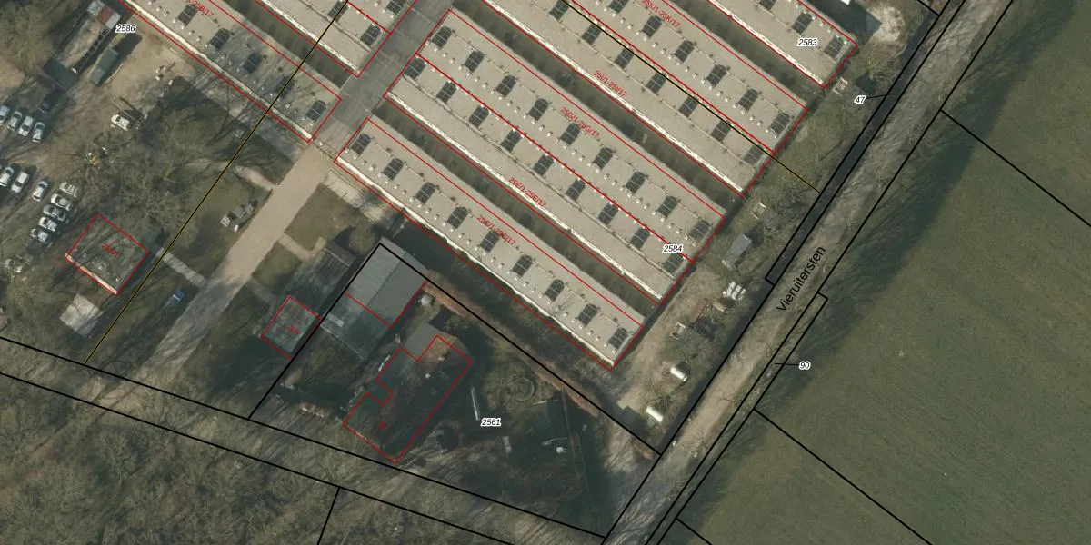 Het perceel waarop Vieruitersten 25-C-13 staat heeft een oppervlakte van 6637 m². Dit is een zeer groot perceel. De perceeloppervlakte wordt geregistreerd door het Kadaster. Gedetailleerde informatie over de maten van dit perceel kunt u vinden in het rapport Kadastrale kaart met maatvoering van Vieruitersten 25-C-13.
