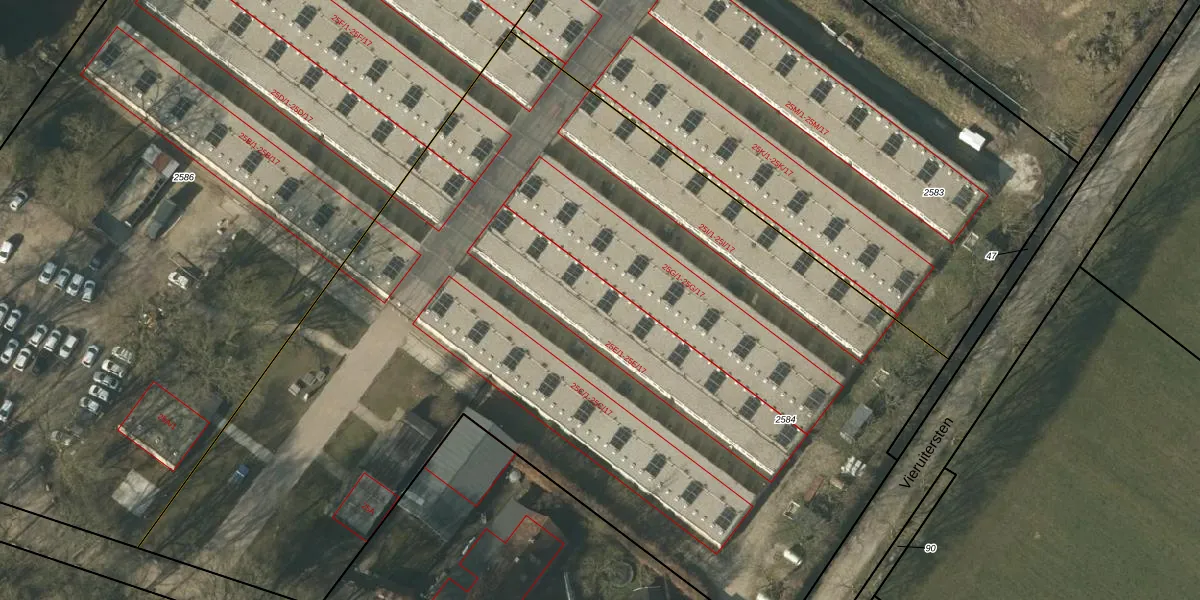 Het perceel waarop Vieruitersten 25-E-6 staat heeft een oppervlakte van 6637 m². Dit is een zeer groot perceel. De perceeloppervlakte wordt geregistreerd door het Kadaster. Gedetailleerde informatie over de maten van dit perceel kunt u vinden in het rapport Kadastrale kaart met maatvoering van Vieruitersten 25-E-6.