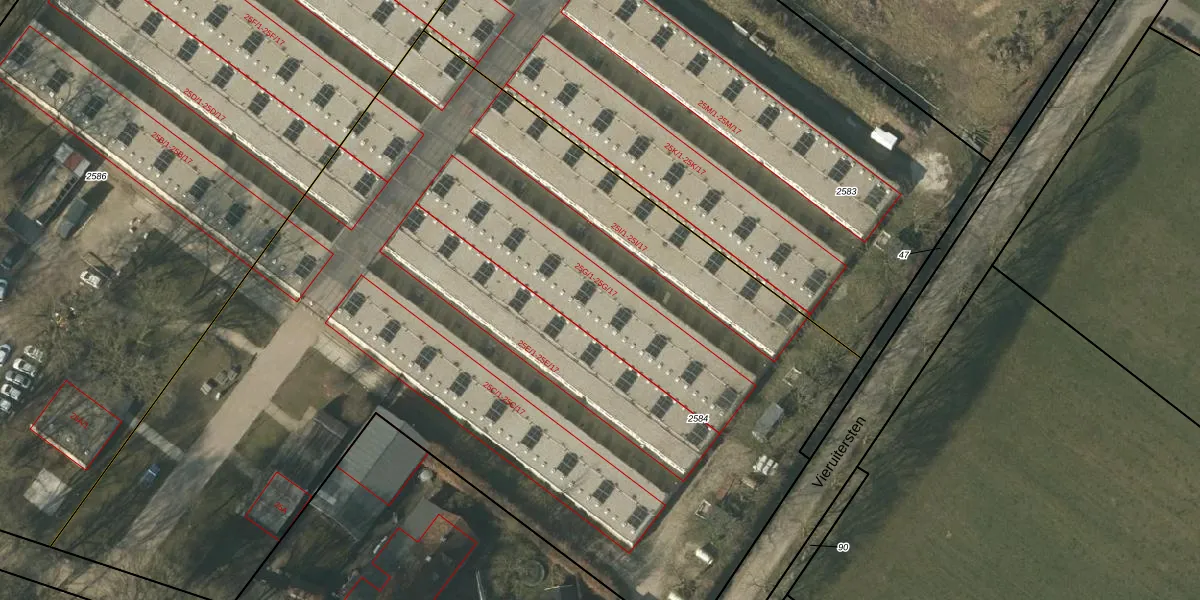 Het perceel waarop Vieruitersten 25-G-10 staat heeft een oppervlakte van 6637 m². Dit is een zeer groot perceel. De perceeloppervlakte wordt geregistreerd door het Kadaster. Gedetailleerde informatie over de maten van dit perceel kunt u vinden in het rapport Kadastrale kaart met maatvoering van Vieruitersten 25-G-10.