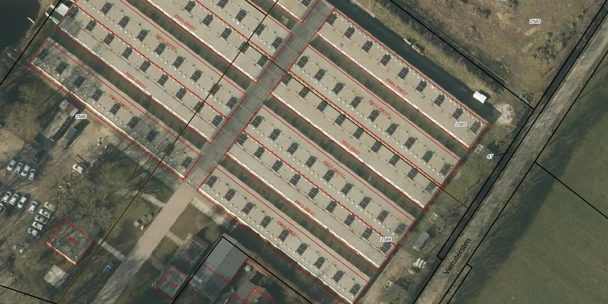 Het perceel waarop Vieruitersten 25-G-6 staat heeft een oppervlakte van 6637 m². Dit is een zeer groot perceel. De perceeloppervlakte wordt geregistreerd door het Kadaster. Gedetailleerde informatie over de maten van dit perceel kunt u vinden in het rapport Kadastrale kaart met maatvoering van Vieruitersten 25-G-6.