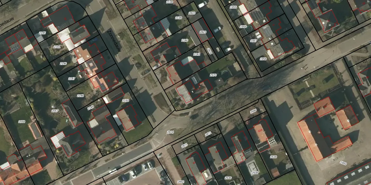 Het perceel waarop Zonnedauw 39 staat heeft een oppervlakte van 640 m². Dit is een groot perceel. De perceeloppervlakte wordt geregistreerd door het Kadaster. Gedetailleerde informatie over de maten van dit perceel kunt u vinden in het rapport Kadastrale kaart met maatvoering van Zonnedauw 39.
