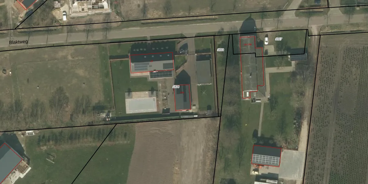 Het perceel waarop Blaktweg 14-a staat heeft een oppervlakte van 7321 m². Dit is een zeer groot perceel. De perceeloppervlakte wordt geregistreerd door het Kadaster. Gedetailleerde informatie over de maten van dit perceel kunt u vinden in het rapport Kadastrale kaart met maatvoering van Blaktweg 14-a.