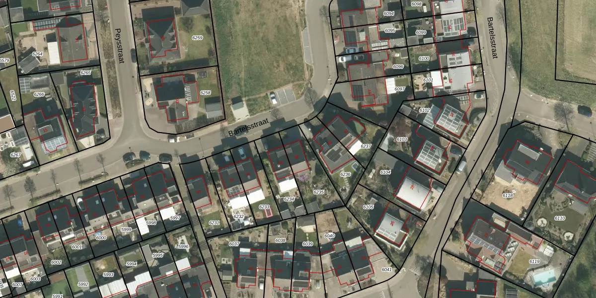 Het perceel waarop Bartelsstraat 38 staat heeft een oppervlakte van 297 m². Dit is een middelgroot perceel. De perceeloppervlakte wordt geregistreerd door het Kadaster. Gedetailleerde informatie over de maten van dit perceel kunt u vinden in het rapport Kadastrale kaart met maatvoering van Bartelsstraat 38.
