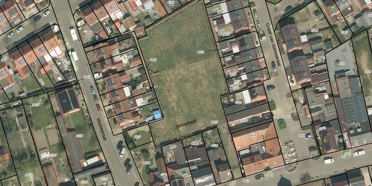Binnehaof 1 is gelegen op kadastraal perceel MLK00E6625. Deze kadastrale aanduiding is uniek en wordt gebruikt door het Kadaster om eigendomsrechten en andere zakelijke rechten vast te leggen. Het perceel maakt onderdeel uit van de kadastrale gemeente Melick en Herkenbosch.