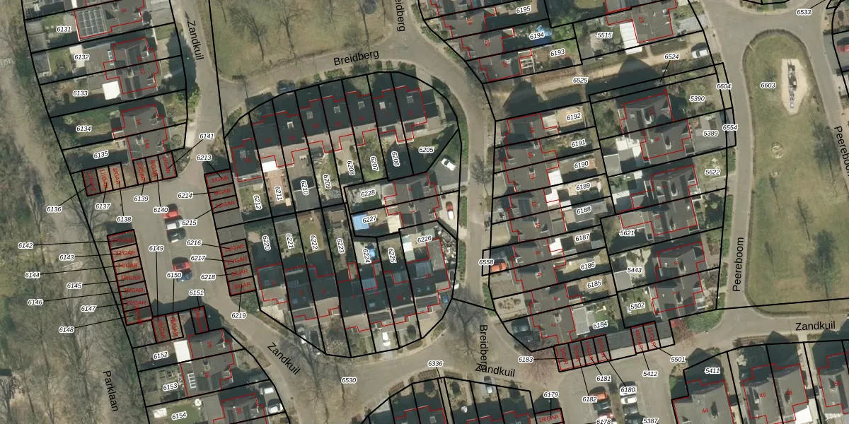 Gebruik de zoekbalk of klik op een perceel voor informatie over de adressen binnen dit perceel.