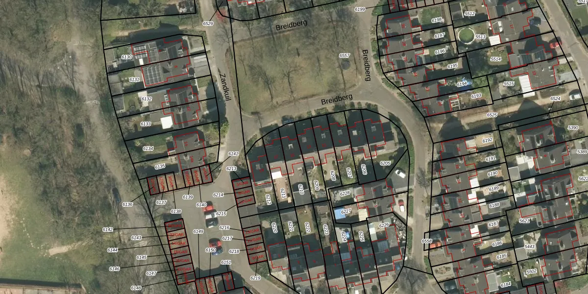 Gebruik de zoekbalk of klik op een perceel voor informatie over de adressen binnen dit perceel.