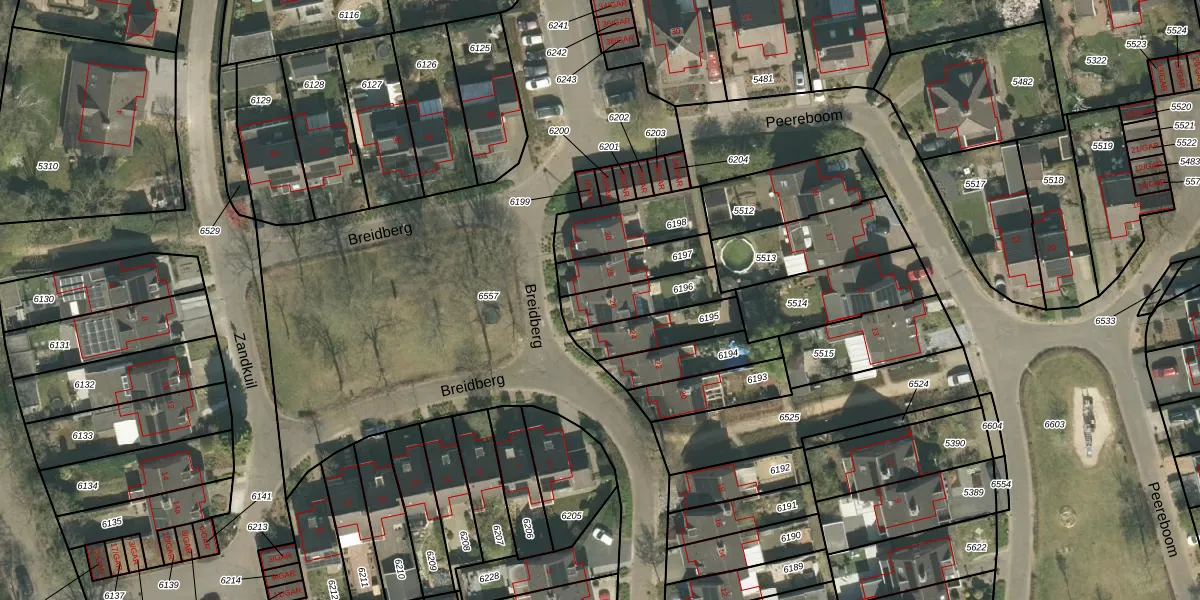 Gebruik de zoekbalk of klik op een perceel voor informatie over de adressen binnen dit perceel.