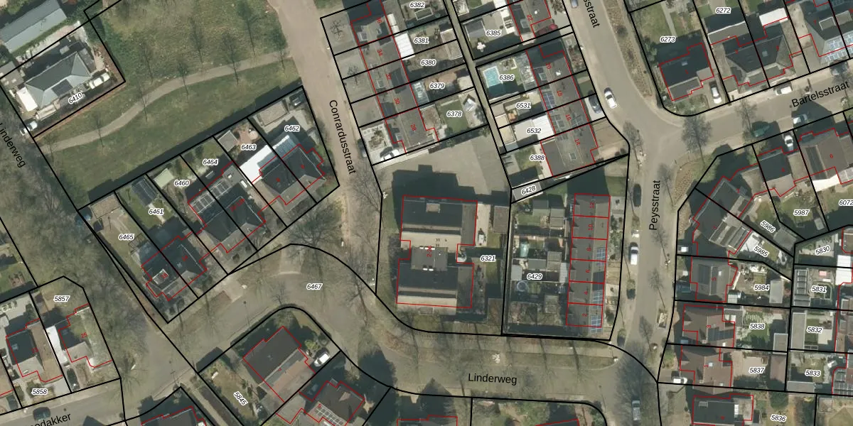 Het perceel waarop Conrardusstraat 2 staat heeft een oppervlakte van 1300 m². Dit is een zeer groot perceel. De perceeloppervlakte wordt geregistreerd door het Kadaster. Gedetailleerde informatie over de maten van dit perceel kunt u vinden in het rapport Kadastrale kaart met maatvoering van Conrardusstraat 2.