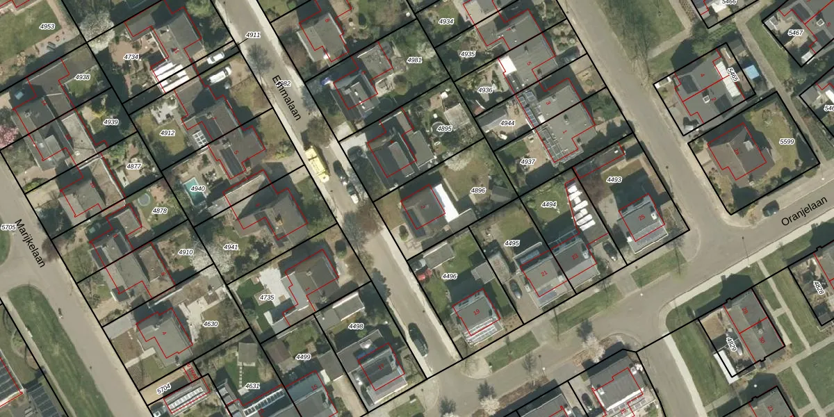Het perceel waarop Emmalaan 2 staat heeft een oppervlakte van 515 m². Dit is een groot perceel. De perceeloppervlakte wordt geregistreerd door het Kadaster. Gedetailleerde informatie over de maten van dit perceel kunt u vinden in het rapport Kadastrale kaart met maatvoering van Emmalaan 2.