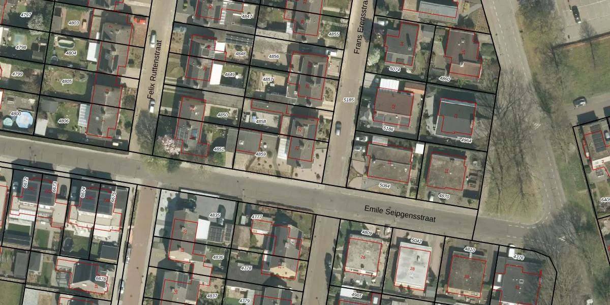Het perceel waarop Frans Erensstraat 21 staat heeft een oppervlakte van 405 m². Dit is een groot perceel. De perceeloppervlakte wordt geregistreerd door het Kadaster. Gedetailleerde informatie over de maten van dit perceel kunt u vinden in het rapport Kadastrale kaart met maatvoering van Frans Erensstraat 21.