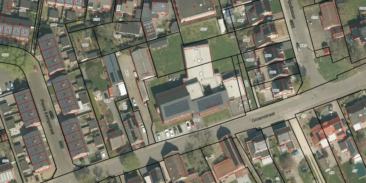 Het perceel waarop Groenstraat 33-k12 staat heeft een oppervlakte van 1725 m². Dit is een zeer groot perceel. De perceeloppervlakte wordt geregistreerd door het Kadaster. Gedetailleerde informatie over de maten van dit perceel kunt u vinden in het rapport Kadastrale kaart met maatvoering van Groenstraat 33-k12.