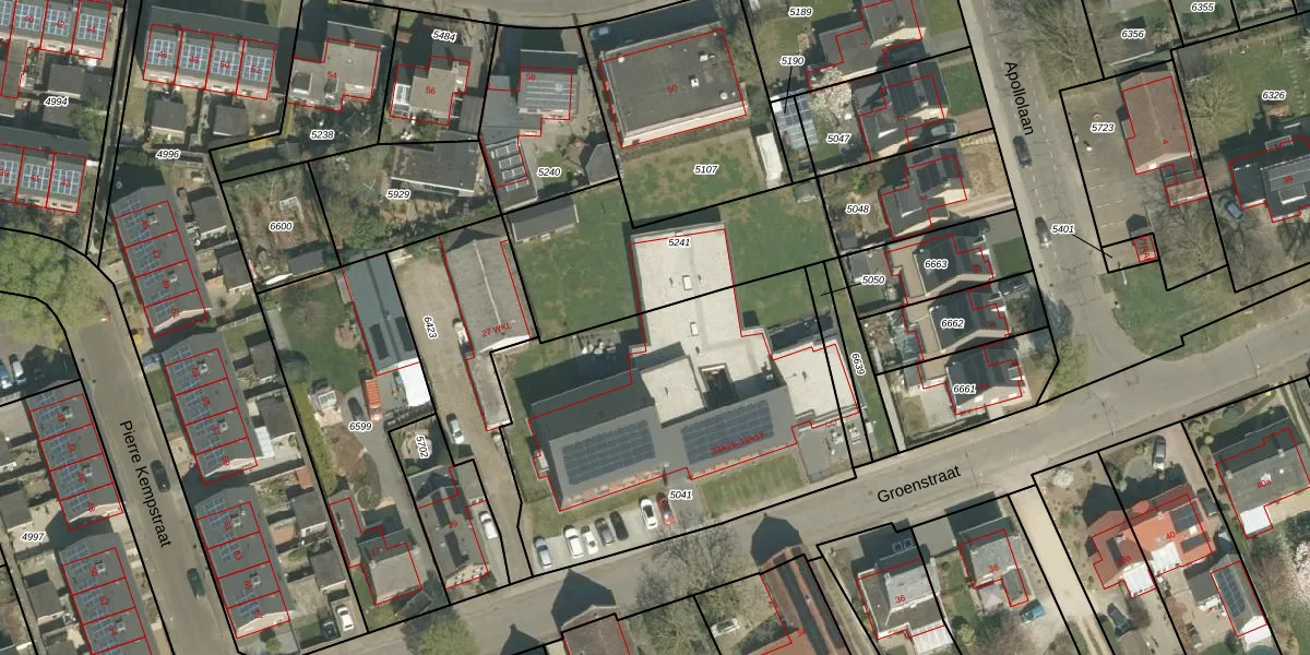 Het perceel waarop Groenstraat 33-k13 staat heeft een oppervlakte van 1725 m². Dit is een zeer groot perceel. De perceeloppervlakte wordt geregistreerd door het Kadaster. Gedetailleerde informatie over de maten van dit perceel kunt u vinden in het rapport Kadastrale kaart met maatvoering van Groenstraat 33-k13.