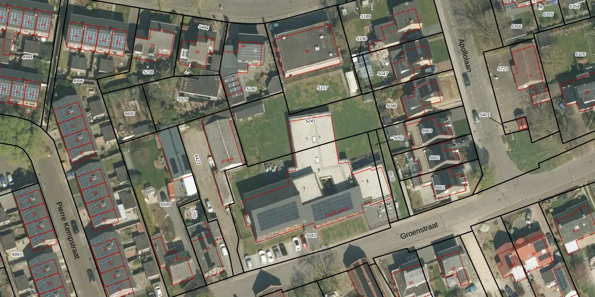 Het perceel waarop Groenstraat 33-k14 staat heeft een oppervlakte van 750 m². Dit is een groot perceel. De perceeloppervlakte wordt geregistreerd door het Kadaster. Gedetailleerde informatie over de maten van dit perceel kunt u vinden in het rapport Kadastrale kaart met maatvoering van Groenstraat 33-k14.