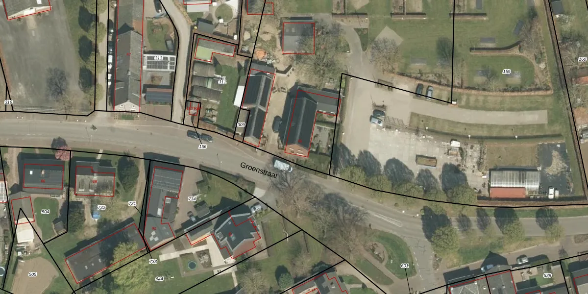 Het perceel waarop Groenstraat 49 staat heeft een oppervlakte van 4629 m². Dit is een zeer groot perceel. De perceeloppervlakte wordt geregistreerd door het Kadaster. Gedetailleerde informatie over de maten van dit perceel kunt u vinden in het rapport Kadastrale kaart met maatvoering van Groenstraat 49.