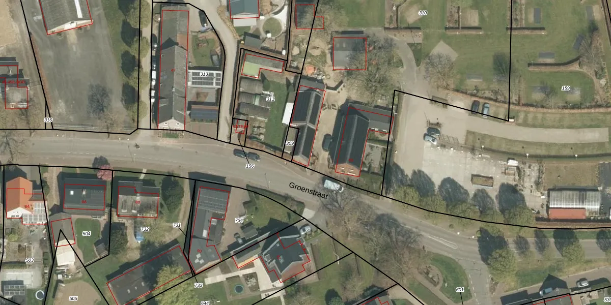 Het perceel waarop Groenstraat 49-a staat heeft een oppervlakte van 4629 m². Dit is een zeer groot perceel. De perceeloppervlakte wordt geregistreerd door het Kadaster. Gedetailleerde informatie over de maten van dit perceel kunt u vinden in het rapport Kadastrale kaart met maatvoering van Groenstraat 49-a.