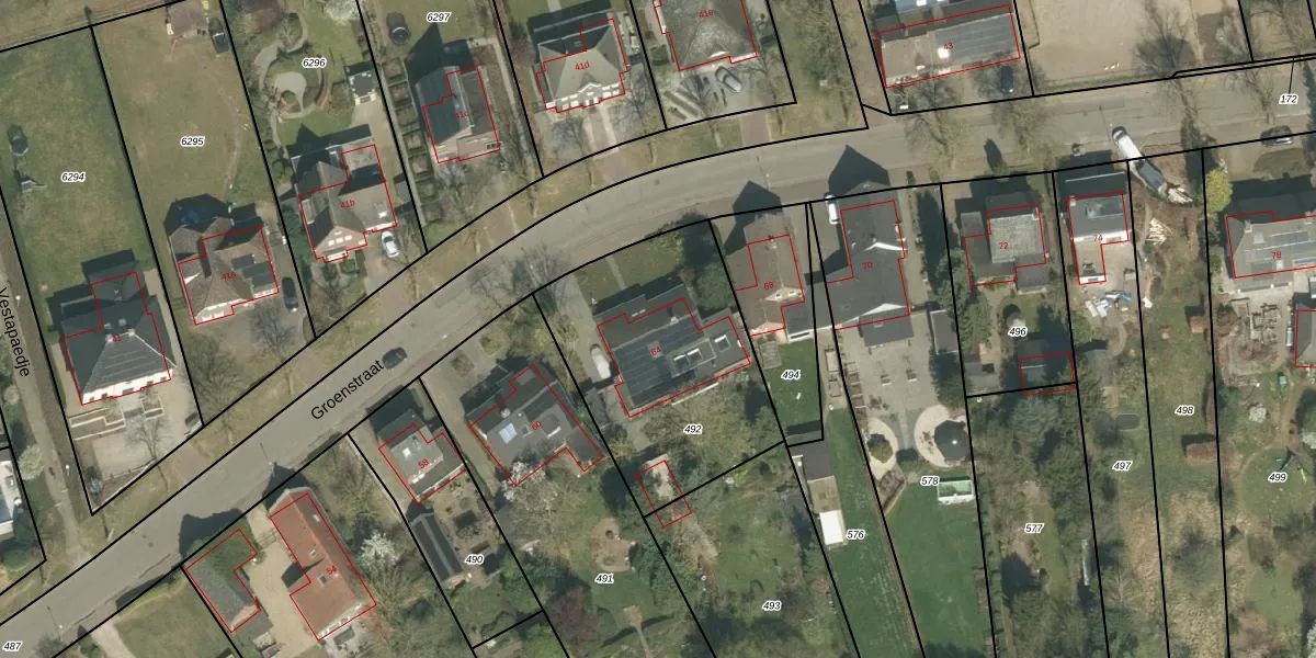Gebruik de zoekbalk of klik op een perceel voor informatie over de adressen binnen dit perceel.