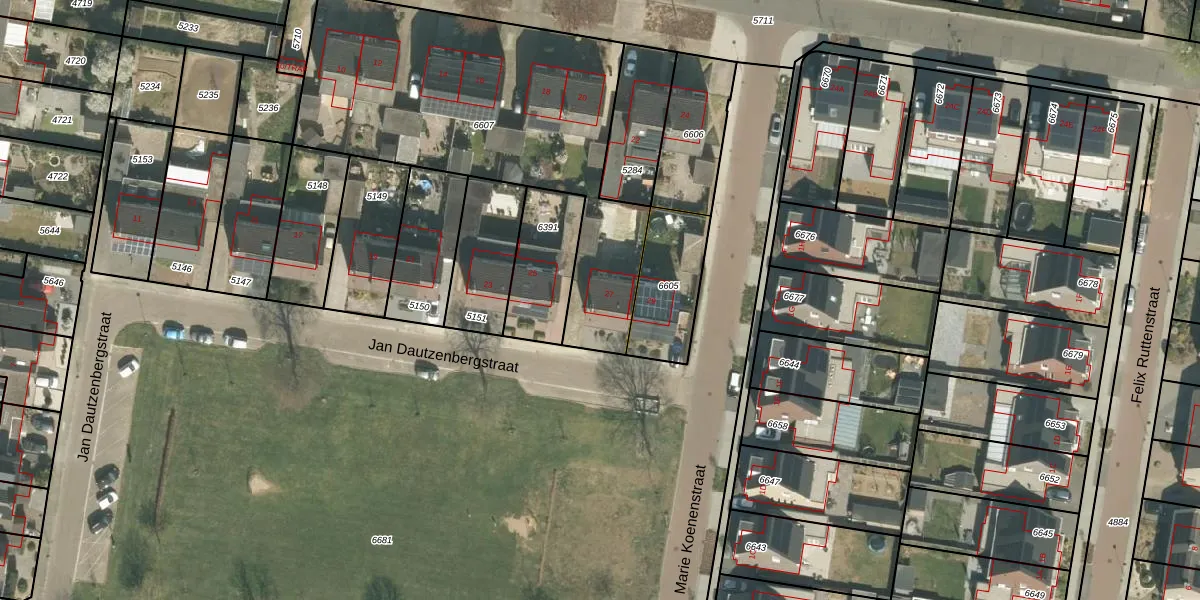Het perceel waarop Jan Dautzenbergstraat 27 staat heeft een oppervlakte van 1627 m². Dit is een zeer groot perceel. De perceeloppervlakte wordt geregistreerd door het Kadaster. Gedetailleerde informatie over de maten van dit perceel kunt u vinden in het rapport Kadastrale kaart met maatvoering van Jan Dautzenbergstraat 27.