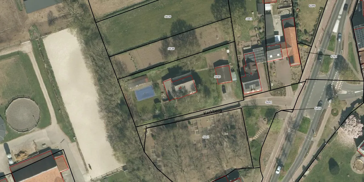 Het perceel waarop Kerkberg 10 staat heeft een oppervlakte van 1850 m². Dit is een zeer groot perceel. De perceeloppervlakte wordt geregistreerd door het Kadaster. Gedetailleerde informatie over de maten van dit perceel kunt u vinden in het rapport Kadastrale kaart met maatvoering van Kerkberg 10.