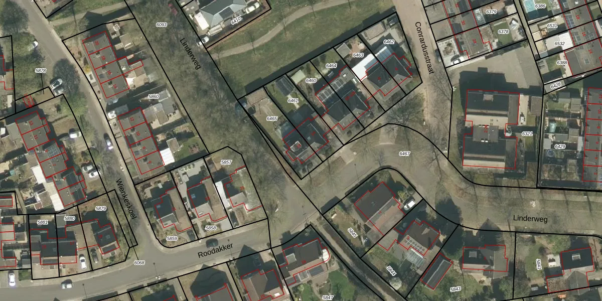 Gebruik de zoekbalk of klik op een perceel voor informatie over de adressen binnen dit perceel.
