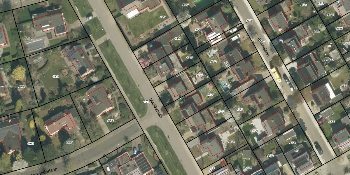 Het perceel waarop Marijkelaan 10 staat heeft een oppervlakte van 390 m². Dit is een groot perceel. De perceeloppervlakte wordt geregistreerd door het Kadaster. Gedetailleerde informatie over de maten van dit perceel kunt u vinden in het rapport Kadastrale kaart met maatvoering van Marijkelaan 10.