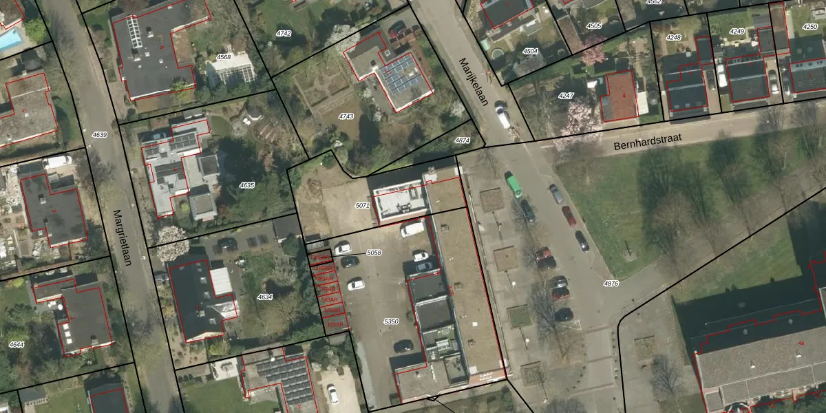Het perceel waarop Marijkelaan 25 staat heeft een oppervlakte van 623 m². Dit is een groot perceel. De perceeloppervlakte wordt geregistreerd door het Kadaster. Gedetailleerde informatie over de maten van dit perceel kunt u vinden in het rapport Kadastrale kaart met maatvoering van Marijkelaan 25.