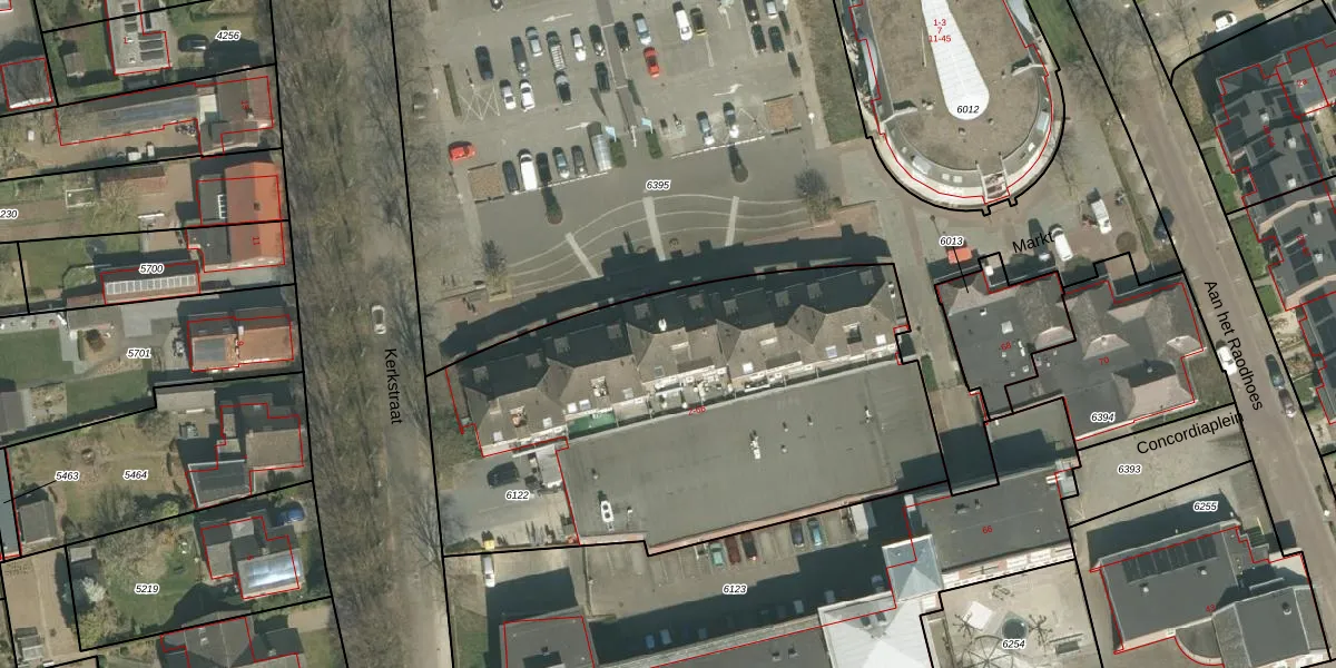 Het perceel waarop Markt 12 staat heeft een oppervlakte van 2556 m². Dit is een zeer groot perceel. De perceeloppervlakte wordt geregistreerd door het Kadaster. Gedetailleerde informatie over de maten van dit perceel kunt u vinden in het rapport Kadastrale kaart met maatvoering van Markt 12.