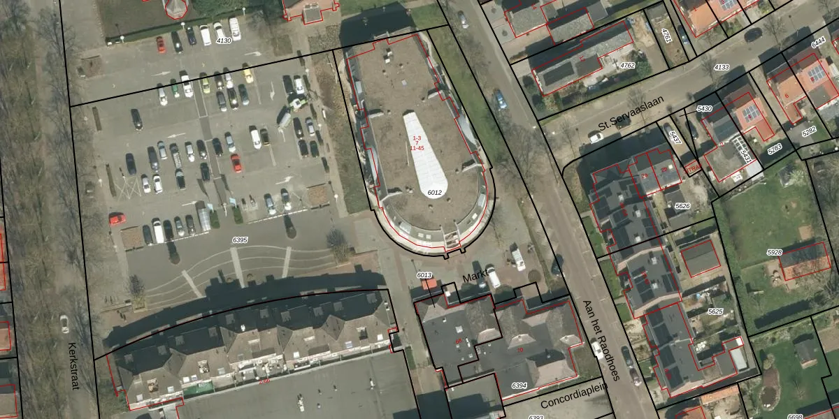 Het perceel waarop Markt 43 staat heeft een oppervlakte van 1390 m². Dit is een zeer groot perceel. De perceeloppervlakte wordt geregistreerd door het Kadaster. Gedetailleerde informatie over de maten van dit perceel kunt u vinden in het rapport Kadastrale kaart met maatvoering van Markt 43.