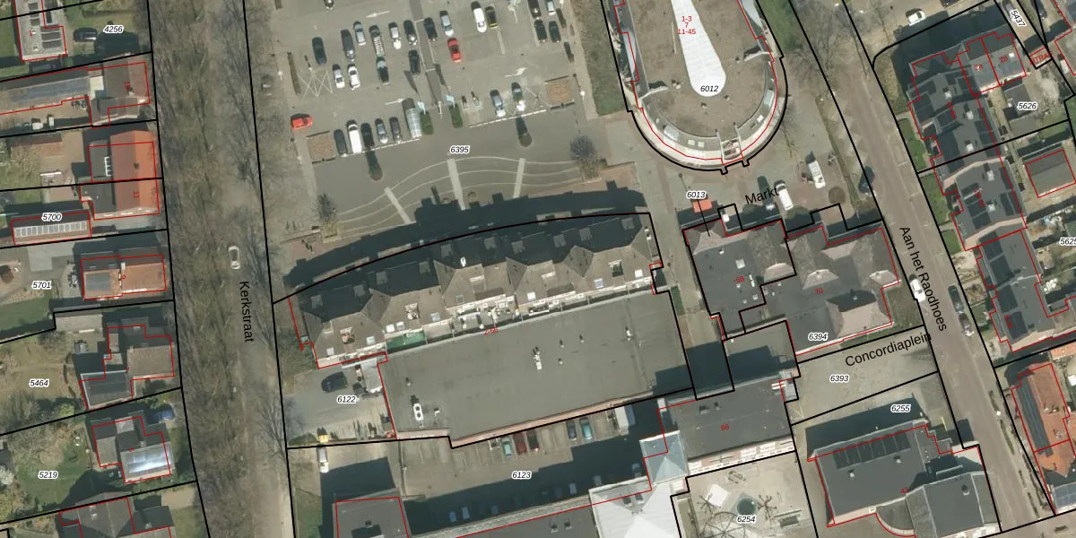 Het perceel waarop Markt 56 staat heeft een oppervlakte van 2556 m². Dit is een zeer groot perceel. De perceeloppervlakte wordt geregistreerd door het Kadaster. Gedetailleerde informatie over de maten van dit perceel kunt u vinden in het rapport Kadastrale kaart met maatvoering van Markt 56.
