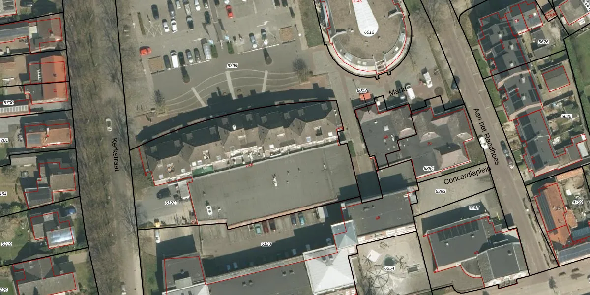 Het perceel waarop Markt 58 staat heeft een oppervlakte van 2556 m². Dit is een zeer groot perceel. De perceeloppervlakte wordt geregistreerd door het Kadaster. Gedetailleerde informatie over de maten van dit perceel kunt u vinden in het rapport Kadastrale kaart met maatvoering van Markt 58.