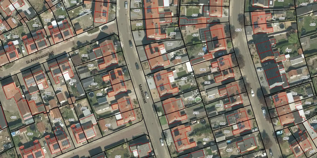 Het perceel waarop Marktstraat 20 staat heeft een oppervlakte van 540 m². Dit is een groot perceel. De perceeloppervlakte wordt geregistreerd door het Kadaster. Gedetailleerde informatie over de maten van dit perceel kunt u vinden in het rapport Kadastrale kaart met maatvoering van Marktstraat 20.