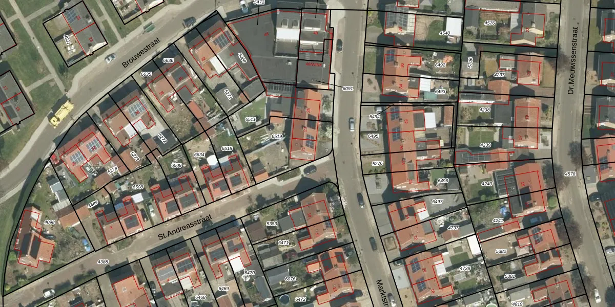Het perceel waarop Marktstraat 21 staat heeft een oppervlakte van 446 m². Dit is een groot perceel. De perceeloppervlakte wordt geregistreerd door het Kadaster. Gedetailleerde informatie over de maten van dit perceel kunt u vinden in het rapport Kadastrale kaart met maatvoering van Marktstraat 21.
