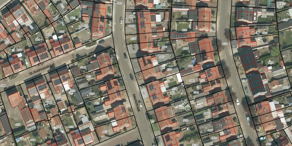 Het perceel waarop Marktstraat 22 staat heeft een oppervlakte van 275 m². Dit is een middelgroot perceel. De perceeloppervlakte wordt geregistreerd door het Kadaster. Gedetailleerde informatie over de maten van dit perceel kunt u vinden in het rapport Kadastrale kaart met maatvoering van Marktstraat 22.