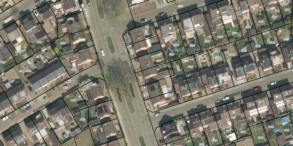 Gebruik de zoekbalk of klik op een perceel voor informatie over de adressen binnen dit perceel.