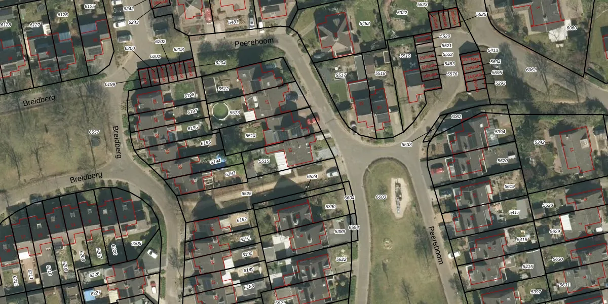 Gebruik de zoekbalk of klik op een perceel voor informatie over de adressen binnen dit perceel.