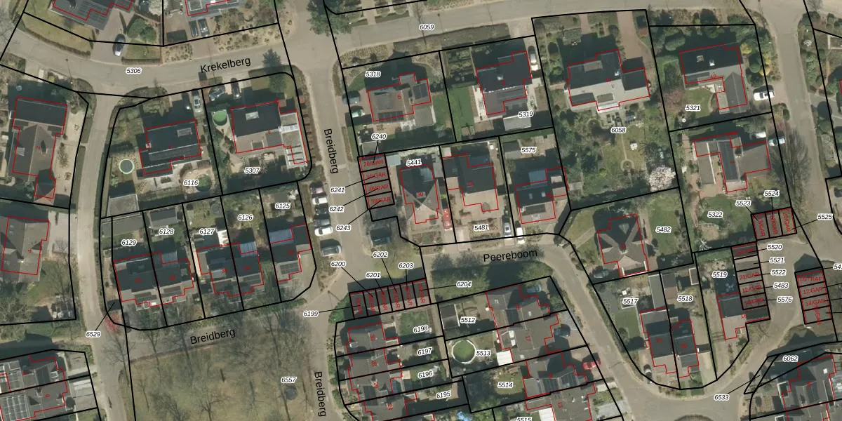 Het perceel waarop Peereboom 30 staat heeft een oppervlakte van 315 m². Dit is een groot perceel. De perceeloppervlakte wordt geregistreerd door het Kadaster. Gedetailleerde informatie over de maten van dit perceel kunt u vinden in het rapport Kadastrale kaart met maatvoering van Peereboom 30.