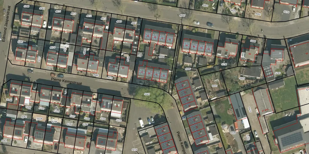 Het perceel waarop Pierre Kempstraat 41 staat heeft een oppervlakte van 1045 m². Dit is een zeer groot perceel. De perceeloppervlakte wordt geregistreerd door het Kadaster. Gedetailleerde informatie over de maten van dit perceel kunt u vinden in het rapport Kadastrale kaart met maatvoering van Pierre Kempstraat 41.