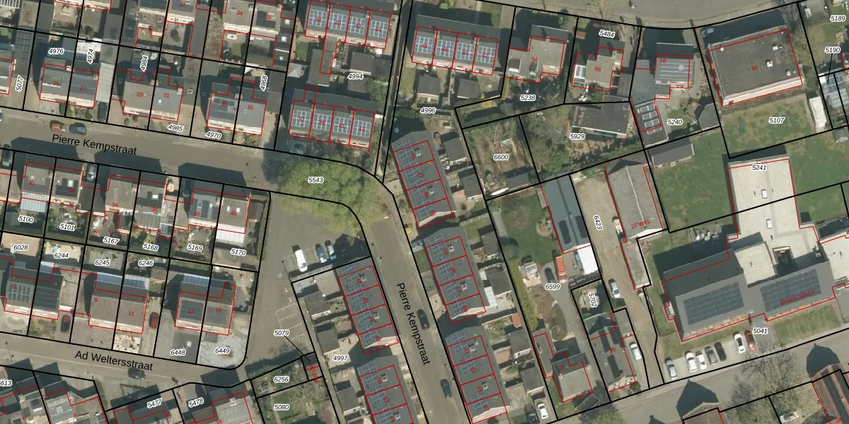 Het perceel waarop Pierre Kempstraat 51 staat heeft een oppervlakte van 2145 m². Dit is een zeer groot perceel. De perceeloppervlakte wordt geregistreerd door het Kadaster. Gedetailleerde informatie over de maten van dit perceel kunt u vinden in het rapport Kadastrale kaart met maatvoering van Pierre Kempstraat 51.